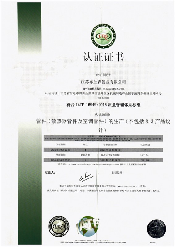 布蘭森熱傳輸新材有限公司二○○七年創立于廣東省深圳市,二○○九年成立江西布蘭森熱傳輸新材有限公司,2020年成立江蘇布蘭森管業有限公司,公司坐落在江蘇省泗洪縣青陽工業園內,公司自購廠房,投資1.5億元人民幣,廠房占地面積42畝,廠房建筑面積1.5萬多平方米,員工人數150多人,合作客戶200...